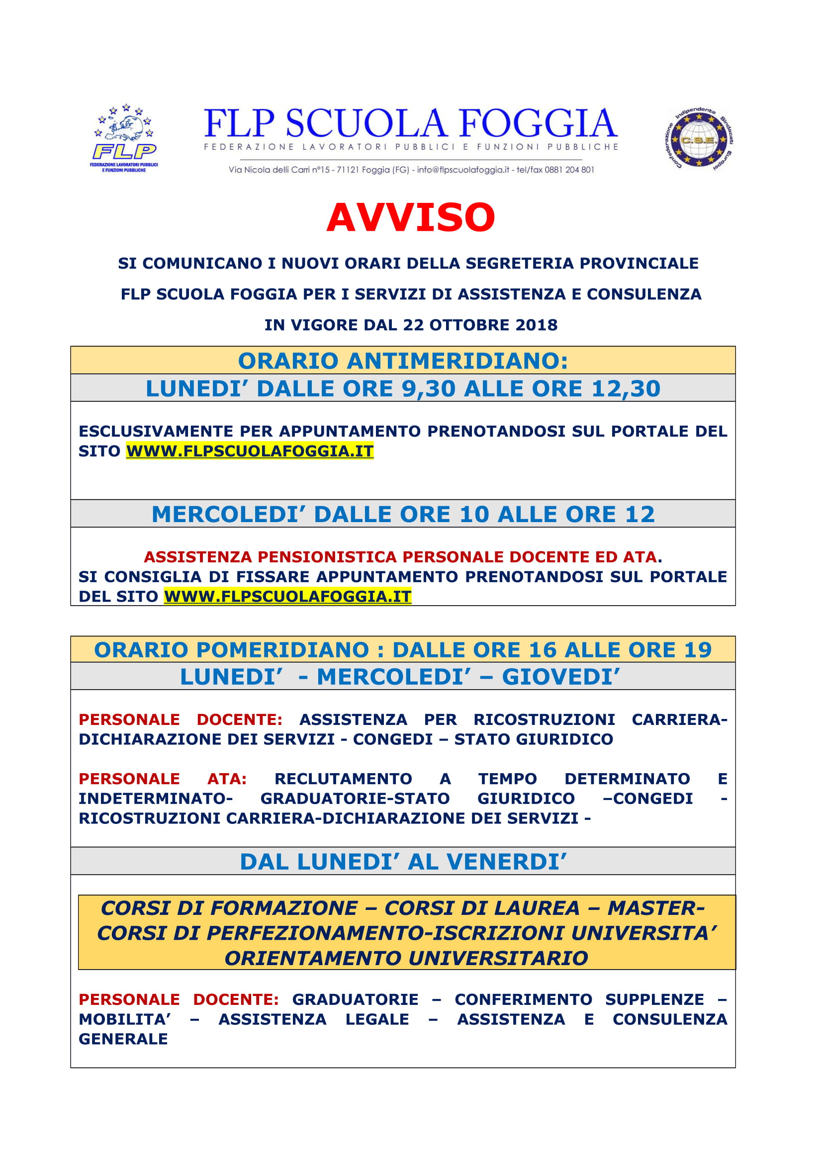 PER PRENOTARE APPUNTAMENTO COLLEGARSI SUL PORTALE DEL SITO WWW.FLPSCUOLAFOGGIA.IT