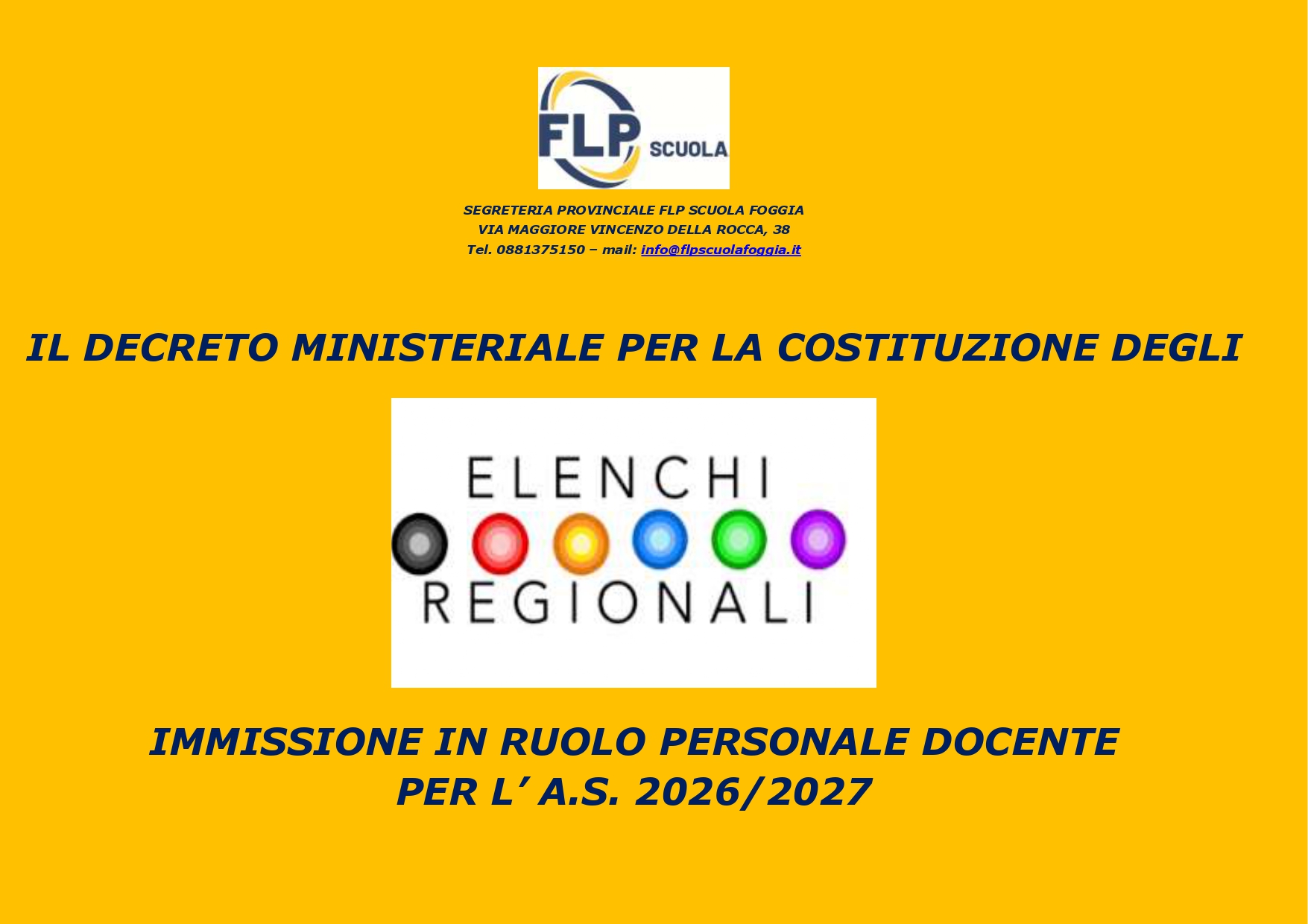ELENCHI REGIONALI PER IL RUOLO: PUBBLICATO IL DECRETO MINISTERIALE – TUTTO CIO’ CHE C’E’ DA SAPERE 29 Aprile 2026 di flpscuolafoggia Il Ministero dell’Istruzione e del … Leggi il seguito
