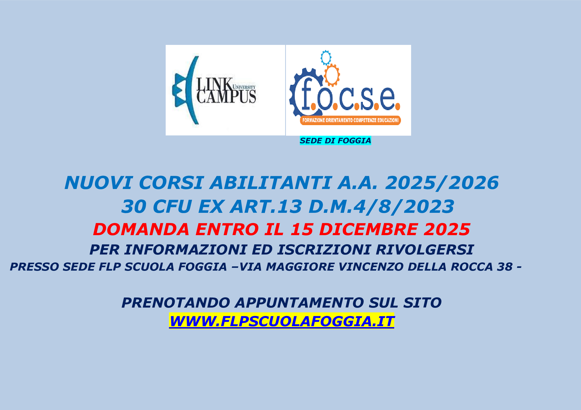 Nel nostro precedente comunicato – clicca qui – abbiamo dato notizia della pubblicazione dei bandi di accesso ai corsi abilitanti da 30 cfu attivati per l’a.a. 2025/2026 dall’UNIVERSITA’ E-CAMPUS.
