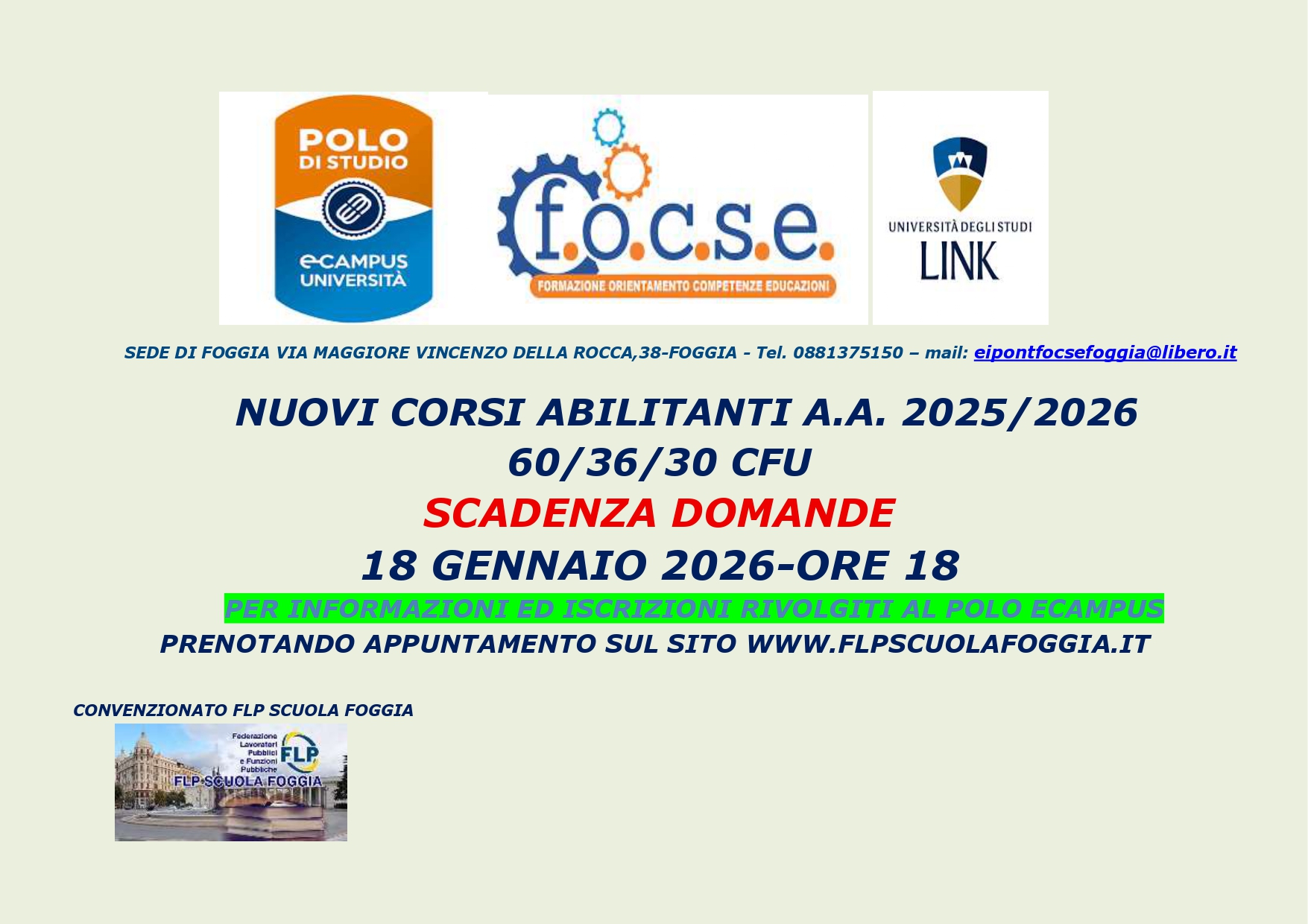 Si comunica che l’Università degli Studi Link ha effettuato tutti gli adempimenti necessari per l’attivazione dei percorsi abilitanti di formazione iniziale come da DPCM 4 agosto 2023, elencati di seguito unitamente alle classi, per l’a.a. 2025/2026 e pubblicato il bando di riferimento per i percorsi 60/36/30 cfu,